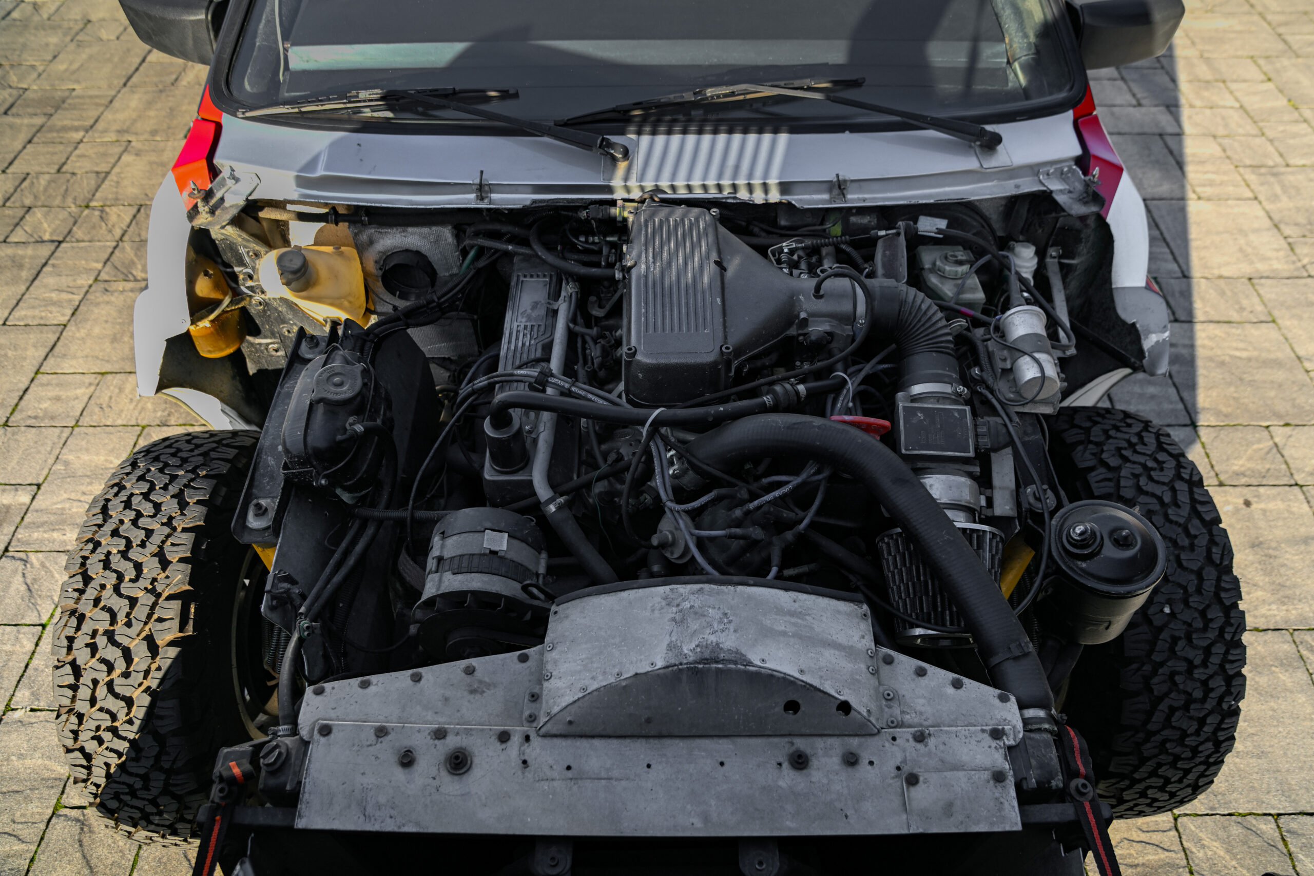 La vettura viene progettata da zero per competere nella durissima Parigi – Dakar: vengono prese in considerazione caratteristiche fondamentali come affidabilità, peso ridotto, accessibilità, facilità di intervento, comfort e guidabilità. Viene utilizzato un telaio di derivazione Range Rover con sbalzo posteriore ridotto e rinforzi nei punti di attacco delle sospensioni; l’assale rigido è stato mantenuto aggiungendo puntine e una barra Panhard anche sul ponte posteriore. È stato installato un rollbar integrato per proteggere l’abitacolo. La carrozzeria in fibra di vetro e kevlar è imbullonata al telaio con tamponi in gomma per assorbire gli urti; i cofani anteriore e posteriore sono progettati per facilitare l’accesso alle parti meccaniche in caso di guasto e incidente; i sedili sono anatomici Sparco. Il motore è il classico Rover V8 da 3500 cc potenziato a 230 CV a 5400 giri/min. La posizione del motore ha permesso una distribuzione del peso del 50% su entrambi gli assi. La velocità massima è prossima ai 200 km/h. L’alimentazione, lo scarico e la trasmissione (inclusi cambio, frizione, alberi di trasmissione e giunti) sono stati ampiamente modificati. Il sistema di raffreddamento è stato potenziato con un nuovo scambiatore di calore che consente di ottenere una corretta temperatura dell’olio motore/cambio in tutte le condizioni. L’innovazione più importante è il sistema di sospensioni pneumatiche autolivellanti progettato dallo stesso De’ Paoli. Quattro molle ad aria sostituiscono le molle elicoidali e sono collegate a un circuito di potenza controllato dal navigatore. Un elettrocompressore fornisce aria nella quantità e pressione desiderate; ogni asse è dotato di un livellatore che determina il carico e lo scarico dell’aria nel sistema in base all’assetto della vettura. Tramite un comando sul cruscotto, il navigatore interviene manualmente se si desidera modificare l’assetto. Dietro i sedili è alloggiato un serbatoio da 450 litri che consente un’autonomia di oltre 1000 km sulla base di un consumo di 20/30 litri ogni 100 km. Il costo all’epoca raggiunse i 200 milioni di lire full optional. Il primo prototipo partecipò alla Parigi Dakar nel 1986; al suo ritorno, De’ Paoli apportò alcune modifiche aggiungendo portiere in fibra di vetro, un nuovo cruscotto e un nuovo cofano anteriore e partecipò al Rally dell’Atlante e alla Parigi Dakar nel 1987 con questa nuova versione aggiornata (prototipo 2). In totale, vennero prodotti 4 prototipi. Dopo la Dakar, l’auto venne venduta a un francese. L’attuale proprietario la acquistò dal secondo proprietario e iniziò un restauro approfondito per riportarla al suo antico splendore con l’aiuto di Franco De Paoli; durante il processo, totalmente documentato, la vettura venne completamente smontata e riassemblata, ogni dettagli ripristinato e portato alle condizioni della partecipazione alla prima Parigi – Dakar del 1986.