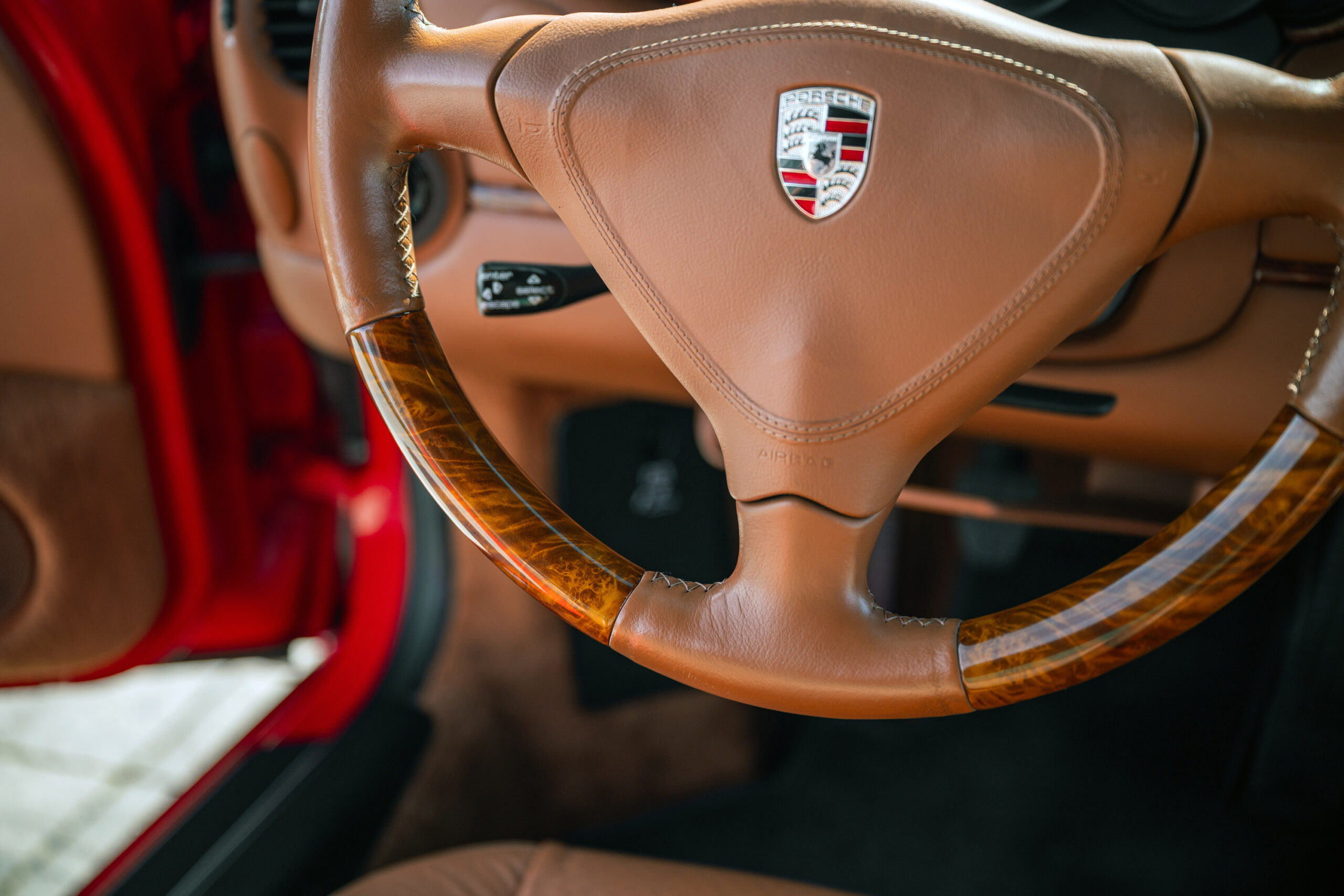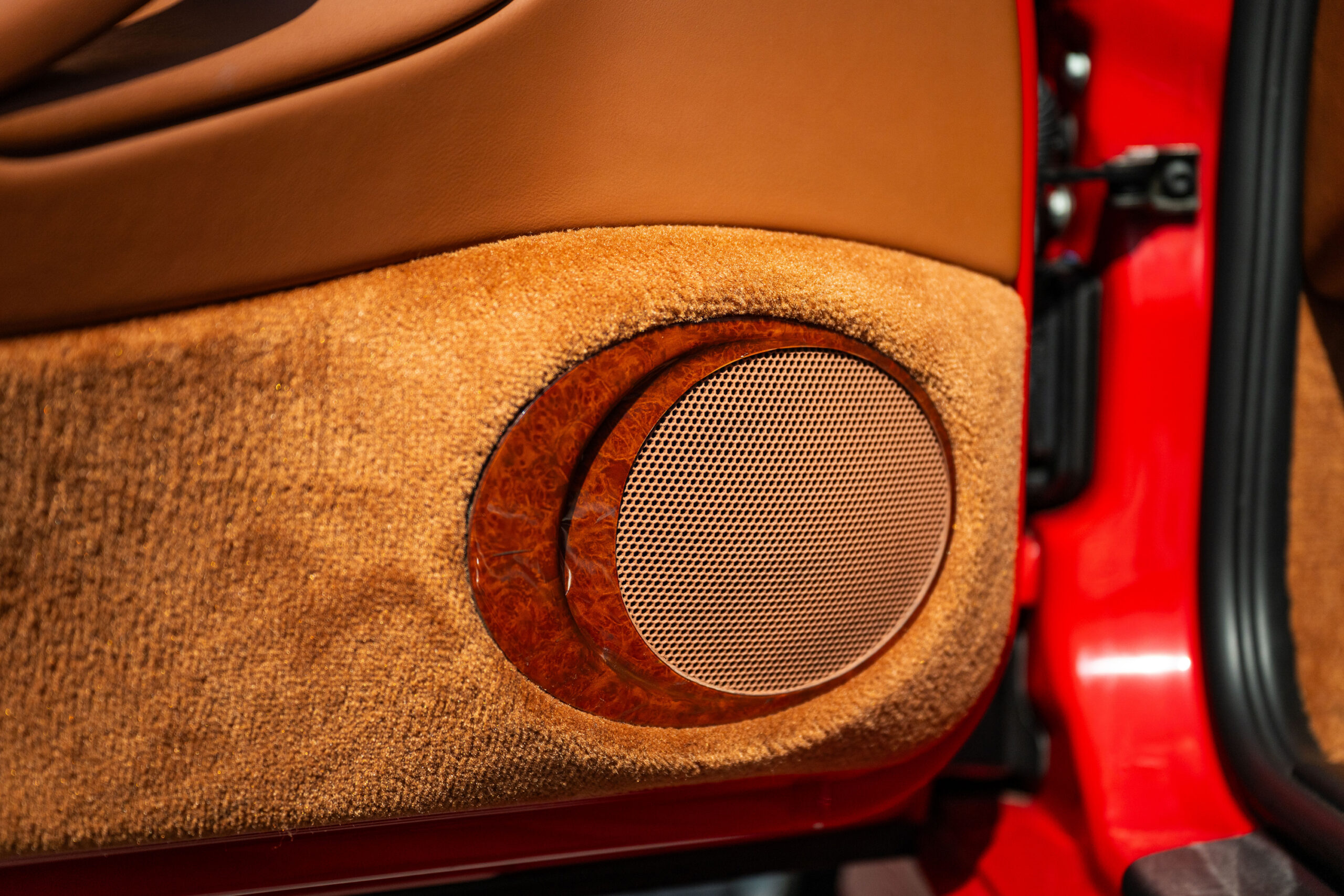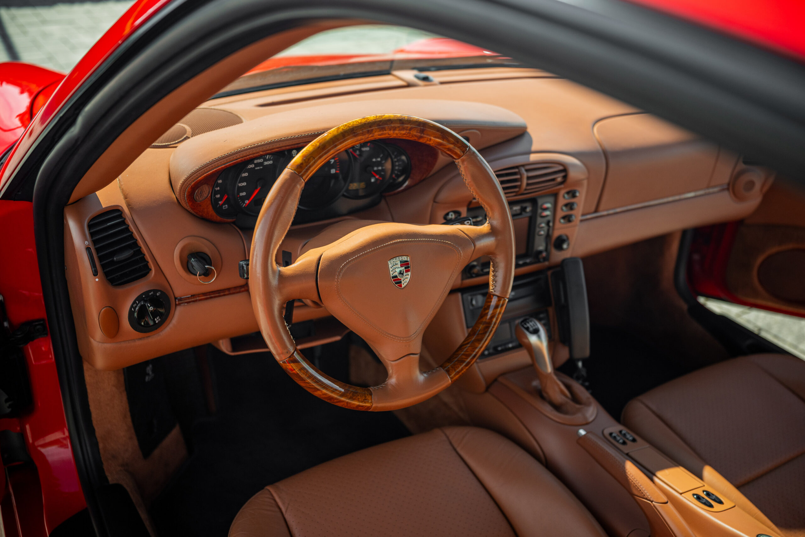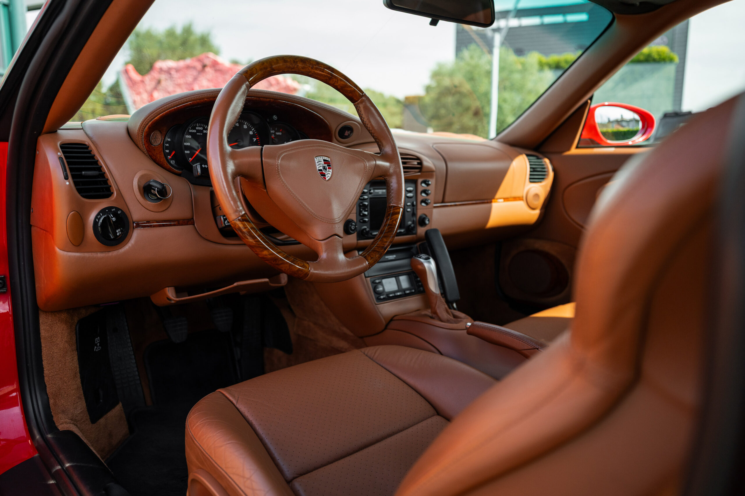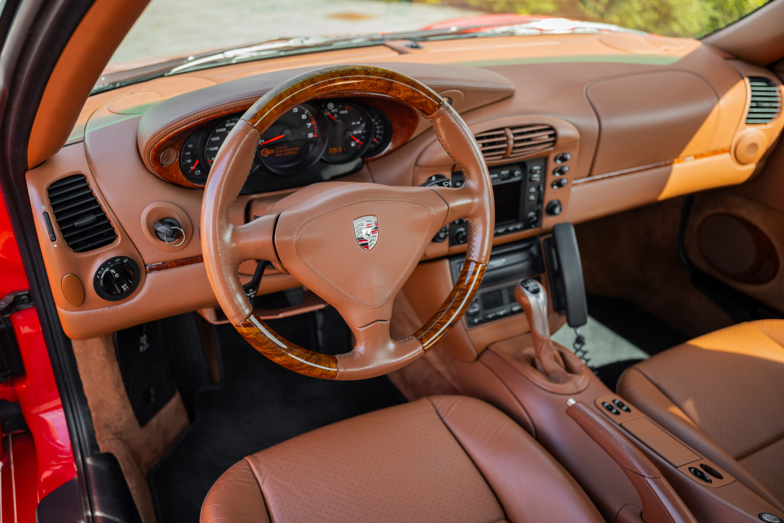 La vettura nello specifico si presenta in ottime condizioni sia da un punto di vista estetico che meccanico, presenta la sua configurazione originale che abbina il rosso indishrot degli esterni all’interno in pelle color terracotta con inserti in radica, rarissimi su questo modello; tra gli optional presenti vi sono allestimento Exclusive, sedili sportivi, cerchi Tequipment, inserti in radica su cruscotto e porte, bocchette rivestite in pelle.