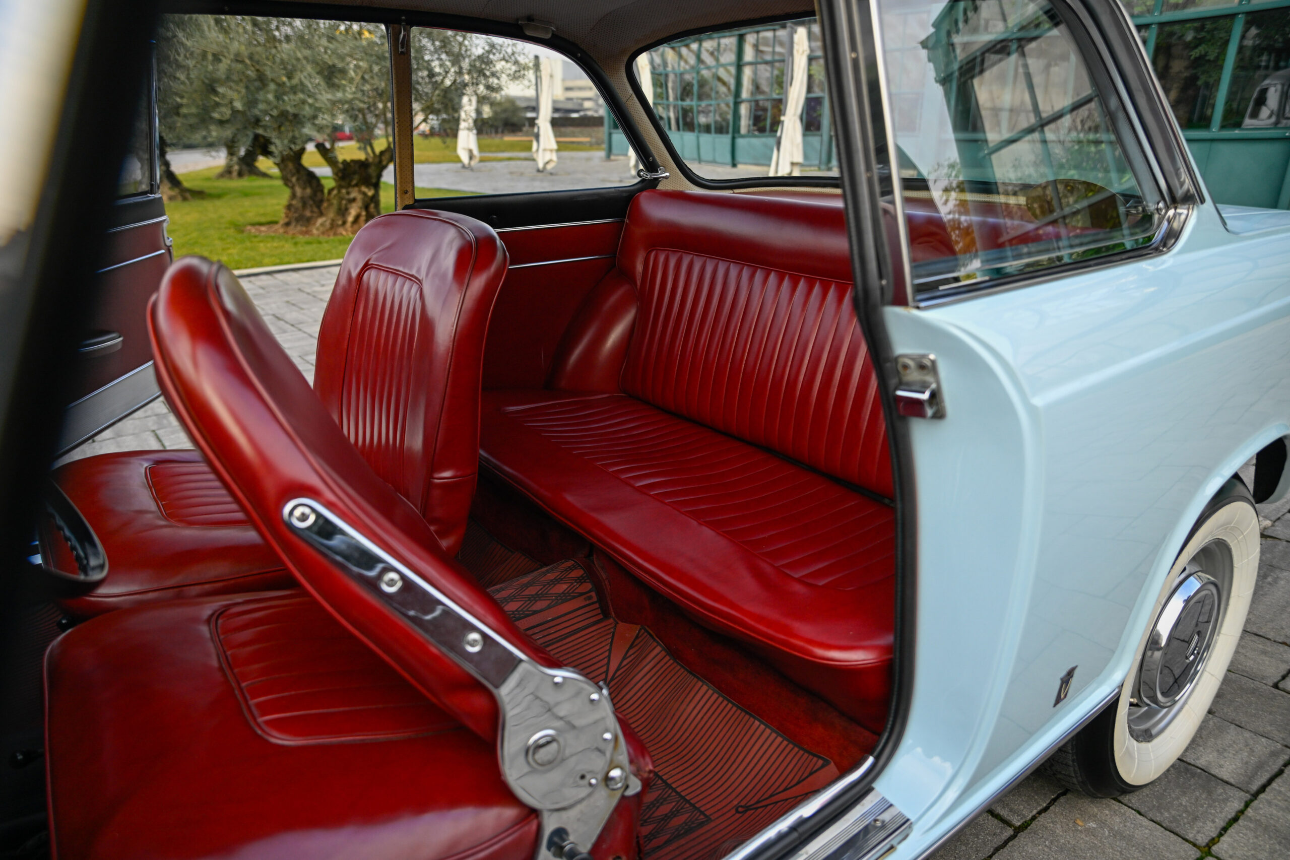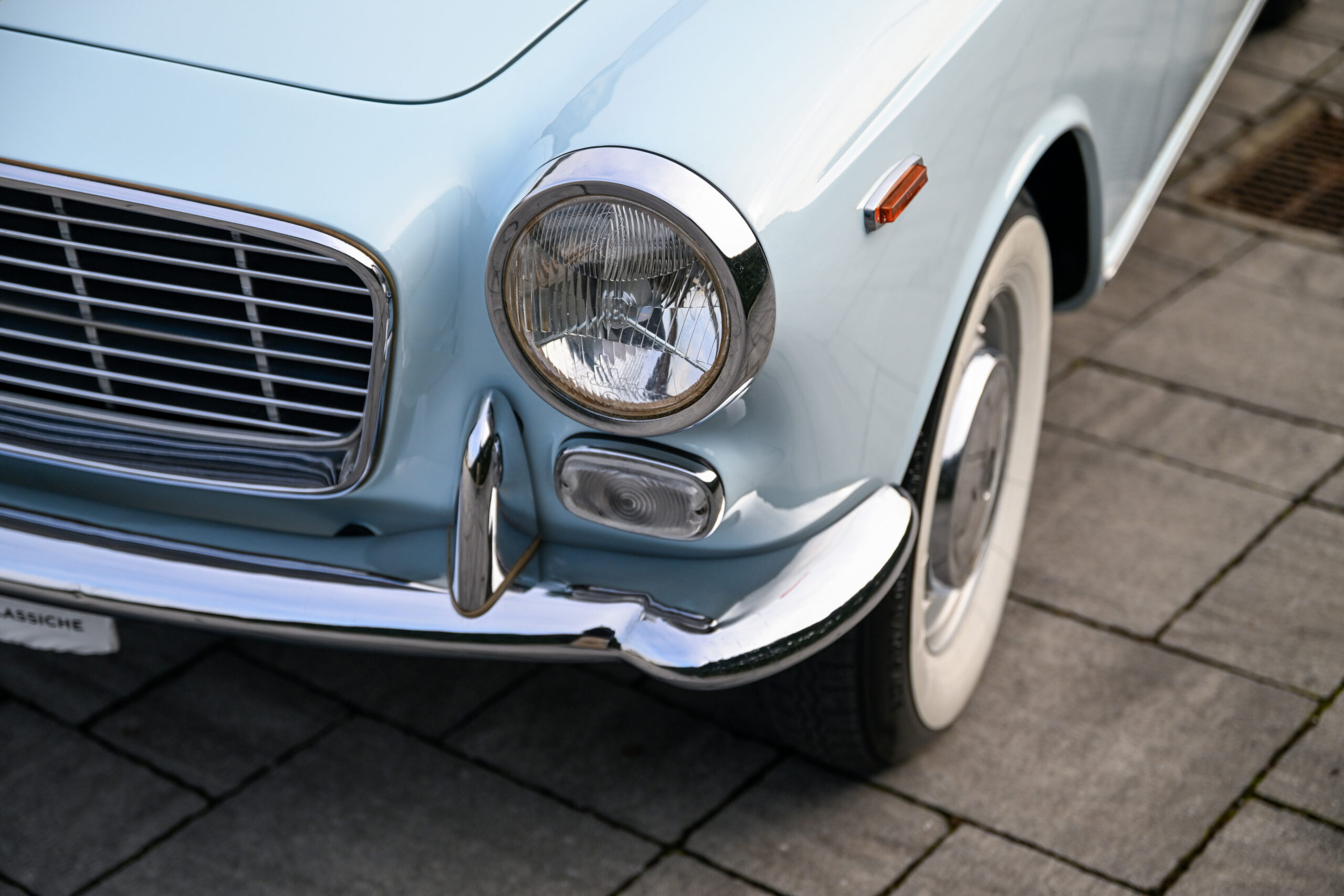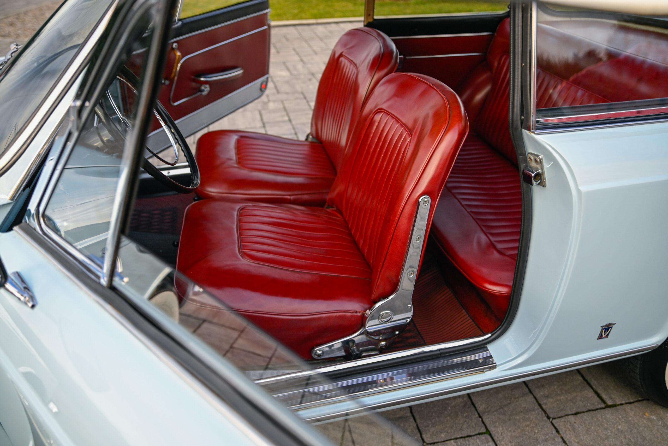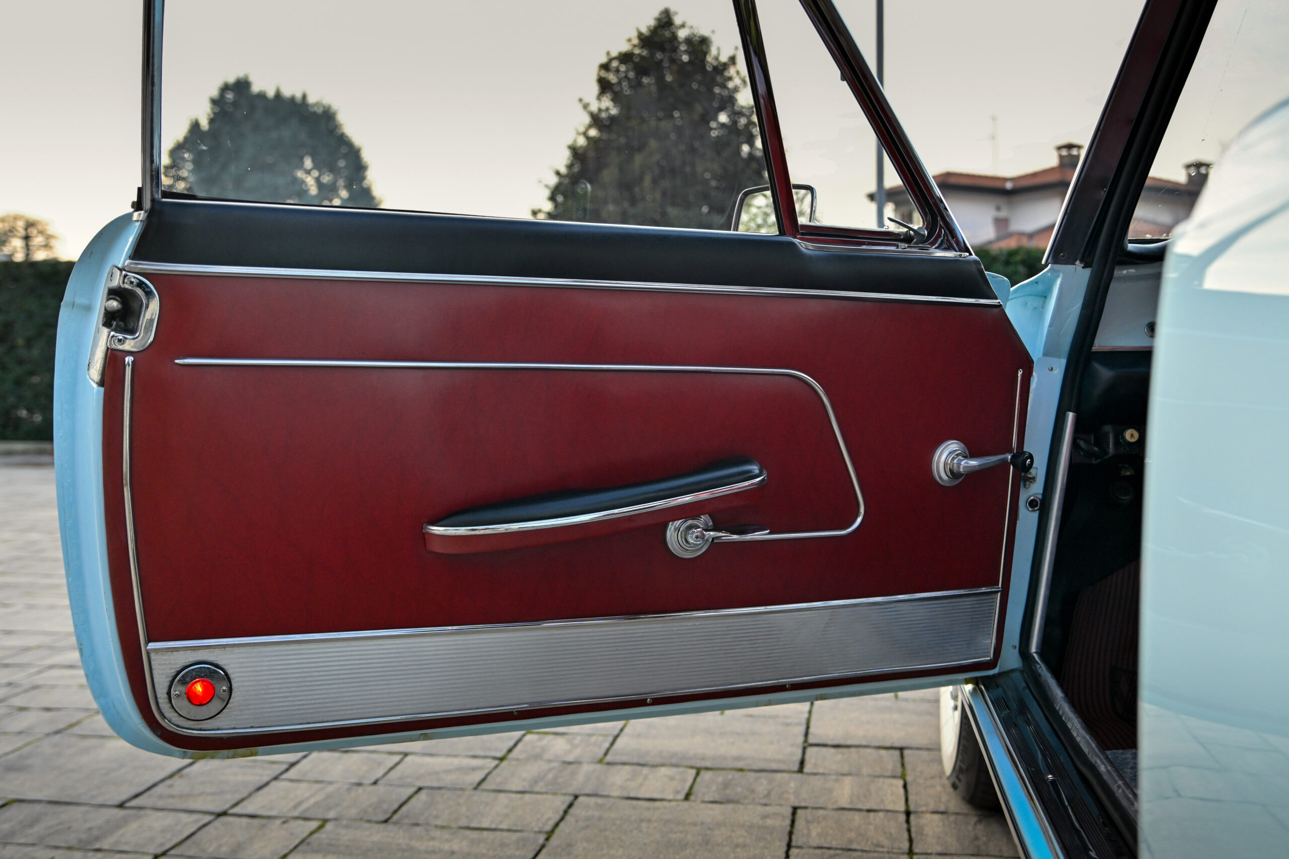 The car underwent a major restoration during which the body was stripped back to sheet metal and repainted while maintaining its original configuration, the engine was restored, the braking system and differential were replaced, and all electrical part has been rebuilt. The configuration combines the pale blue exterior with the reddish tan leather of the completely original and preserved interior, as well as all the original and rare Vignale details present on this model, perfectly preserved.