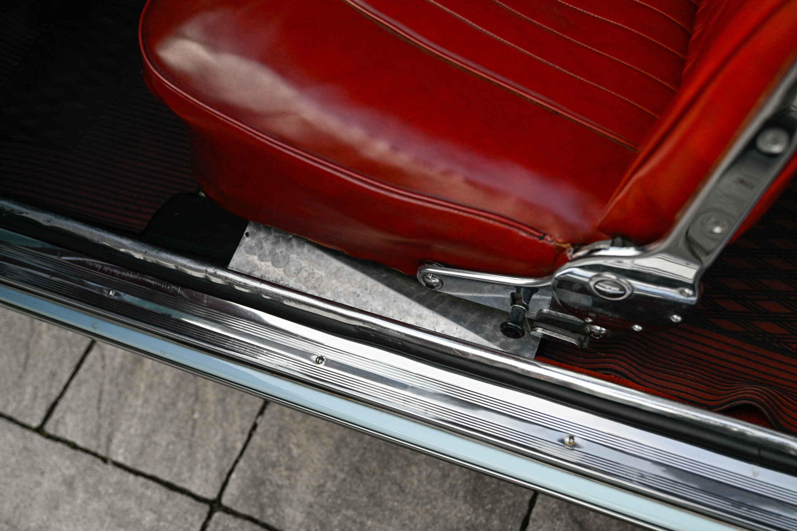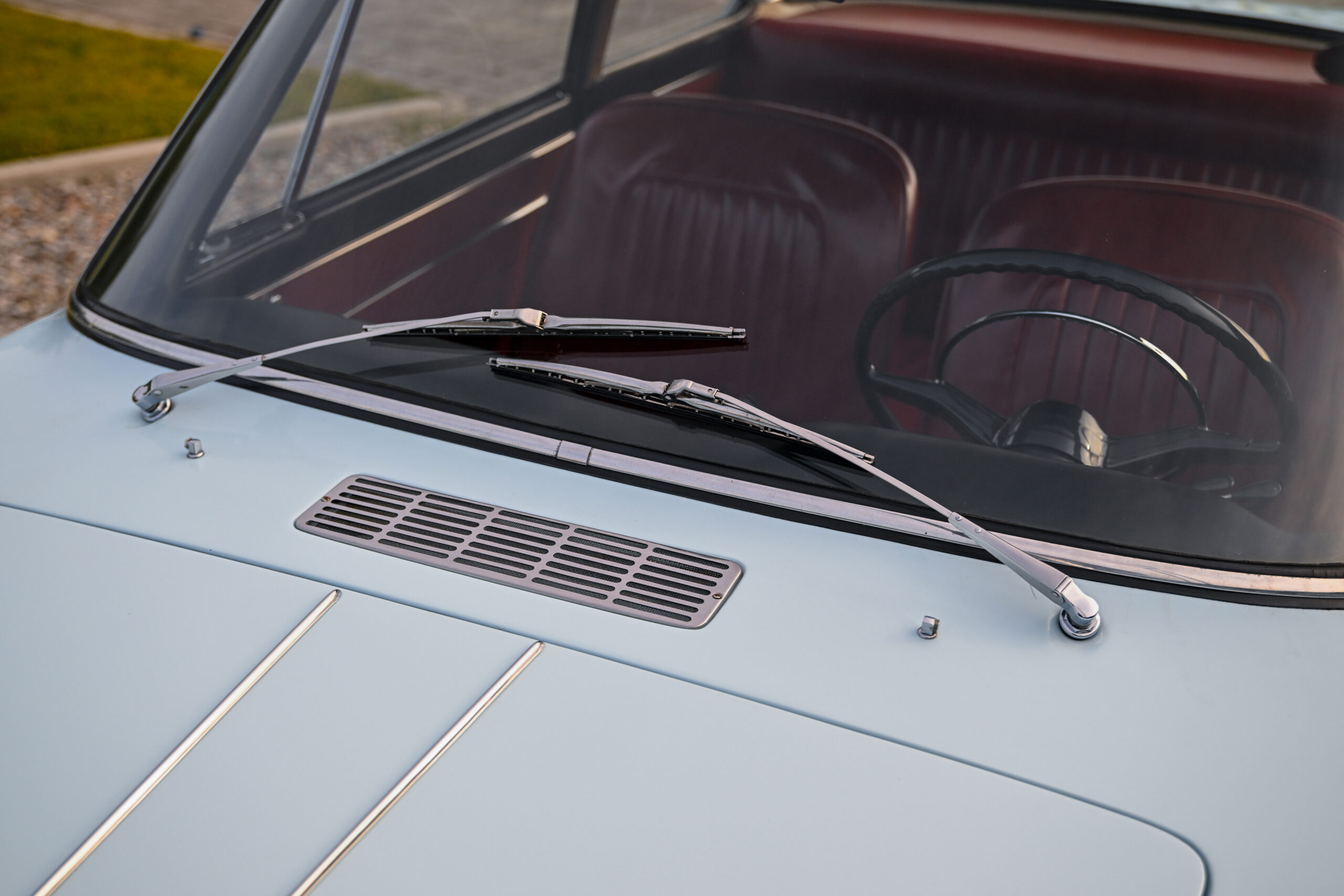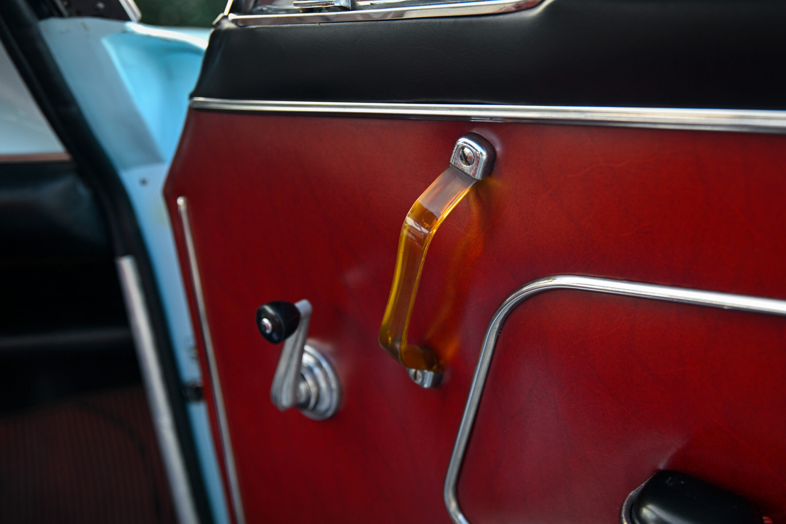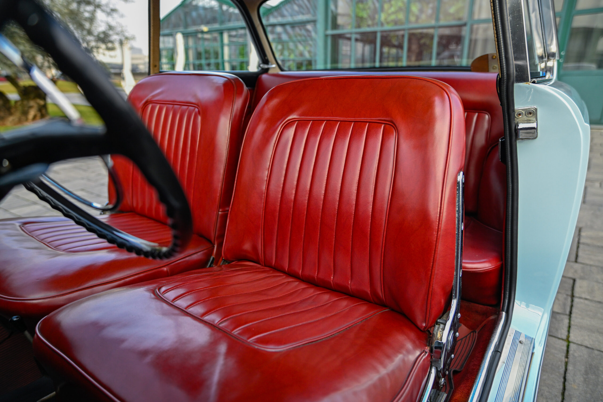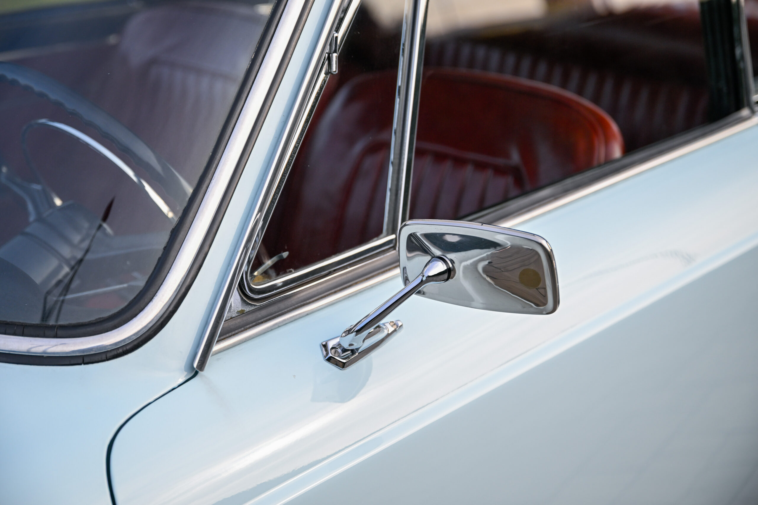 The car underwent a major restoration during which the body was stripped back to sheet metal and repainted while maintaining its original configuration, the engine was restored, the braking system and differential were replaced, and all electrical part has been rebuilt. The configuration combines the pale blue exterior with the reddish tan leather of the completely original and preserved interior, as well as all the original and rare Vignale details present on this model, perfectly preserved.